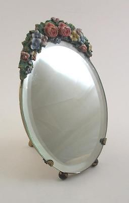 Vintage Small Oval Barbola Mirror - Free Standing, Easel Back - 8.25" High