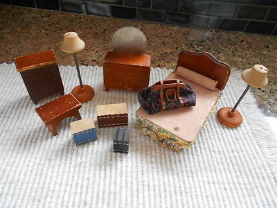 Title (ebay affiliate link): Antique vintage dollhouse wood furniture, mostly bedroom