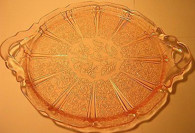 Title (ebay affiliate link): Depression Glass Pink Jeanette "Cherry Blossom" 10 1/4" Handled Serving Platter