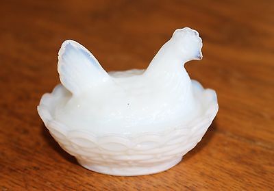 Miniature Milk Glass Chicken on Nest. Candy Dish. Hazel Atlas Depresssion