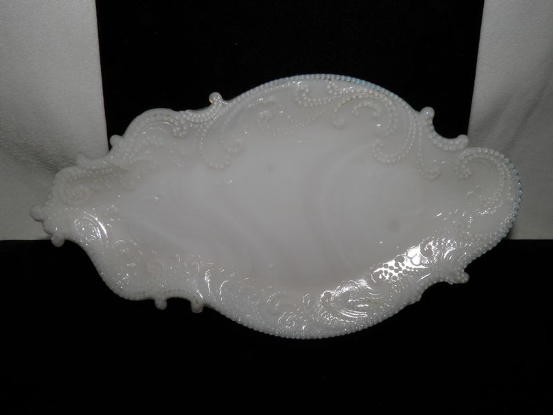Vintage White Milk Glass Beaded Oval Plate Dish