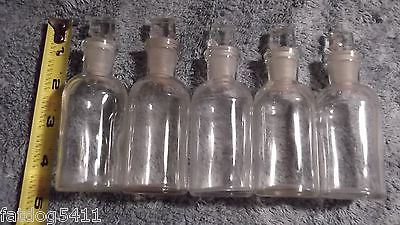 Five Apothecary, Chemistry Bottles with Square Glass Stoppers.