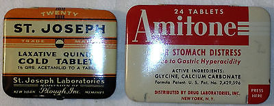 Vintage Medical Pill Tablet Tin Lot of 2 Antacid and Laxative Cold Medicine