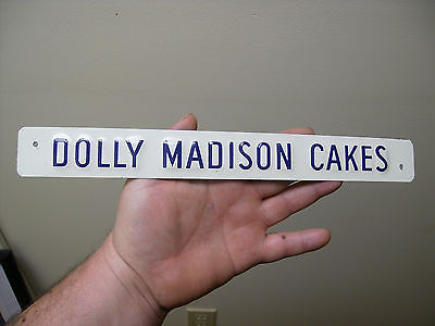 VINTAGE ORIGINAL NOS DOLLY MADISON CAKES EMBOSSED METAL SIGN NOT PORCELAIN