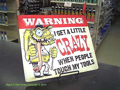 Title (ebay affiliate link): Warning I Get A Little Crazy When People Touch My Tools 3D Metal Sign Rat Fink
