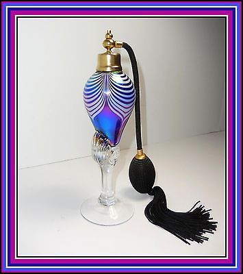 Antique Art Glass Pulled Feather Perfume Bottle w/Atomizer 1930s Blown Crystal!