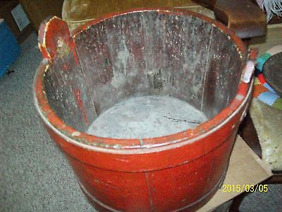 WOODEN BUCKET, 2 BANDS,10 STAVES,no maker ID,USED,many household uses