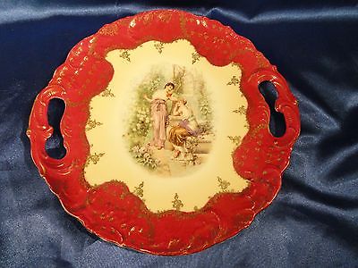 RARE ANTIQUE HAND PAINTED CHINA PLATE WITH TWO CLASSIAL LADIES IN GARDEN