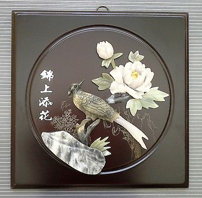 Title (ebay affiliate link): 1990s ASIAN HAND CARVED STONE ON WOODEN PANEL WALL HANGING 10.25'' X 10.2''