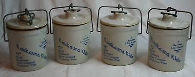 4 Vintage Stoneware Kaukauna Klub-It Taste Like Butter Crocks with Metal Bale