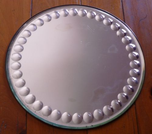 Antique Round Beveled Glass Tin Back Vanity Display Tray Plateau