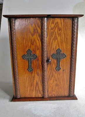 Title (ebay affiliate link): Antique Altar Cabinet Arts & Crafts Mission Oak Wood Shrine Shadowbox