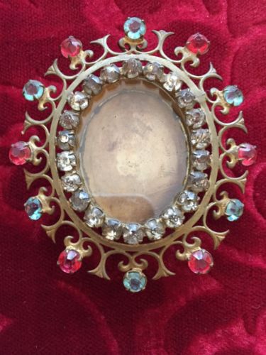 Antique Brass Reliquary Filigree Stones Vintage Rare Picture Frame