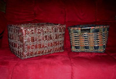 Antique BASKET 2 Painted Splint large early primitive folk art woven paint old