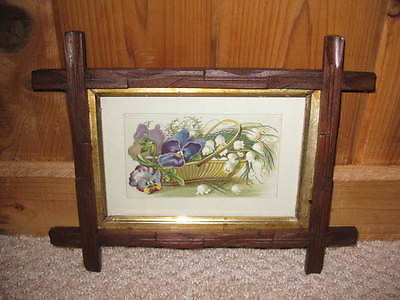 Title (ebay affiliate link): Eastlake Adirondack Walnut Frame with Embossed Lily of the Valley & Pansy Print