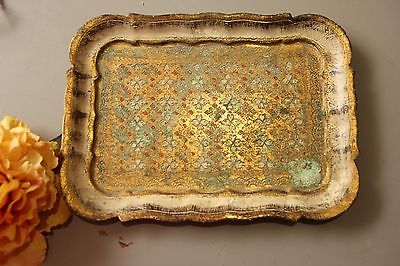 Title (ebay affiliate link): Vitg White & Gold Gilt Vintage Italian Florentine Tole Painted Wood Tray Shabby