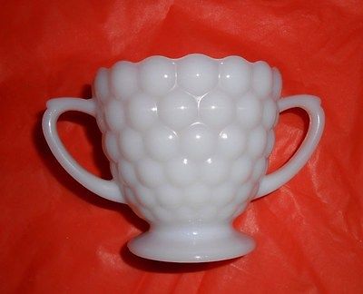 Title (ebay affiliate link): Vintage Bubble Pattern Milk Glass Sugar Bowl with 2 Handles