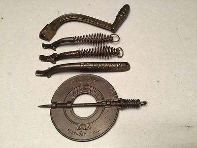 Vintage cook stove-3 lid lifters-stover,renown,no name-1 shaker-round oak-1dampe