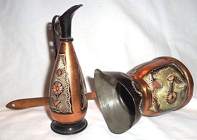 VINTAGE TURKISH COFFEE POT AND URN BRASS COPPER METAL GULISTAN