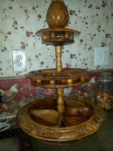 Wood lazy susan 3 tier vintage carousel monkey pod