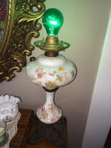 Antique Fancy Double Font Gwtw Lamp Base Painted Floral