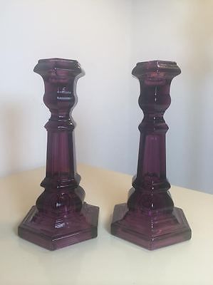 Title (ebay affiliate link): PAIR OF 2 PURPLE GLASS CANDLE HOLDERS/ NEOCLASSICAL STYLE PILLAR COLUMN