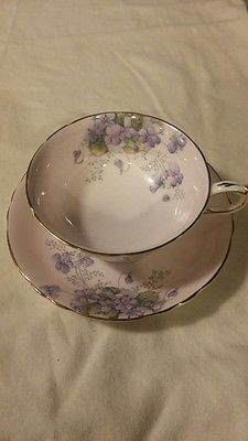 Paragon Tea Cup & Saucer, Fine Bone China Purple Violets Numbered