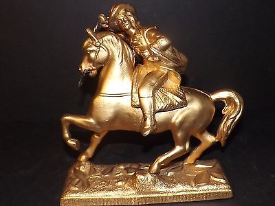 Vintg Cast Metal Statue Figurine Man On Horse Wild Bill Hickok? Lasso Gold Color