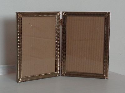 VINTAGE GOLD TONE METAL PICTURE FRAME...5" X 7" DOUBLE