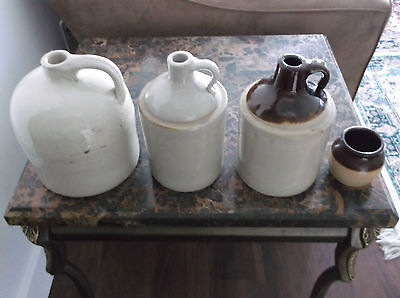 Title (ebay affiliate link): 3 Very Old Vintage Stoneware Pottery Whiskey Jugs & 1 Stoneware Bowl