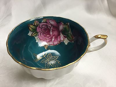 VINTAGE LIPPER MANN PINK ROSE FOOTED TEACUP PEARL & TEAL W/ GOLD TRIM