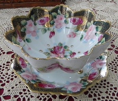 Title (ebay affiliate link): Exquisite Vintage Porcelain Berry Bowl w/ Matching Tray *Perforated *Gold Trim