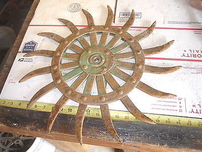 Title (ebay affiliate link): OLD FARM JOHN DEERE SPIKED WHEEL GARDEN FLOWER & RUSTIC WALL DECOR SUNBURST