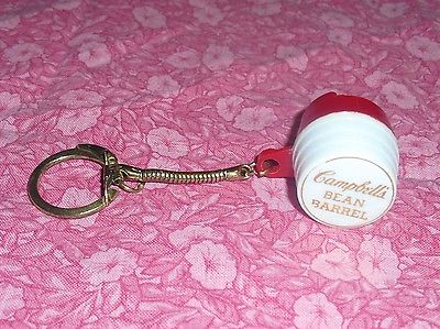 Title (ebay affiliate link): Vintage Campbell's Soup Bean Barrel Advertising Dime Bank Key Chain Fob
