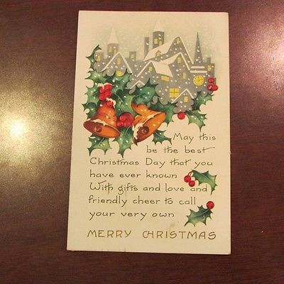 Title (ebay affiliate link): 1926 Whitney Made Christmas POstcard Snow falling over City Holly Bells