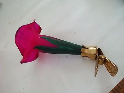 Large Vintage glass blown Christmas ornament Pink Flower yellow center on clip