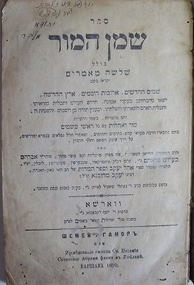 Title (ebay affiliate link): SHEMEN HAMOR-WARSAW 1890 W/ OLD OWNERS SIG. "YEIDEL MELBER" BELZ YOISHEV & MORE
