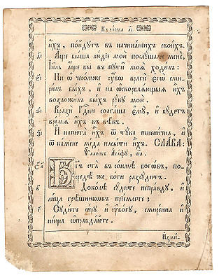 OLD CHURCH SLAVONIC PSALTER LEAF 18TH CENTURY -1h