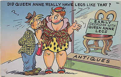 Title (ebay affiliate link): TICHNOR BROS~DID QUEEN ANNE REALLY HAVE LEGS LIKE THAT? COMIC POSTCARD BY FOX