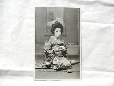 Title (ebay affiliate link): Japan Old postcard 1907-1926 "Maiko Girl In Kimono Having Tea On Tatami" F08