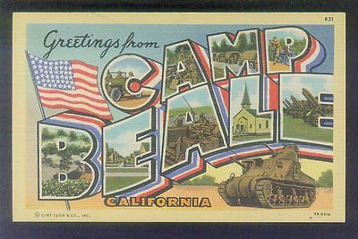 Title (ebay affiliate link): 1943 Greetings from Camp Beale California CURTEICH LARGE LETTER LINEN