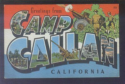 Title (ebay affiliate link): 1940s Greetings from Camp Callan, California LINEN LARGE LETTER