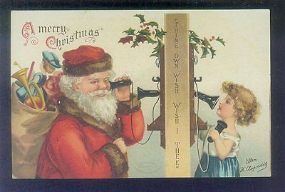 Title (ebay affiliate link): 1908 Ellen Clapsaddle Christmas Red Santa with Toy Sack on phone EMBOSSED