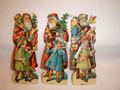 3 ANT/VGT GERMAN SANTA SCRAPS DIECUT LITHOGRAPHS EMBOSSED EARLY 1900'S 4 CRAFTS