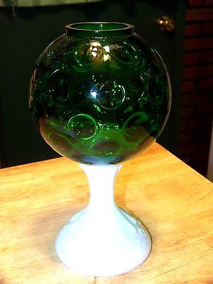 Title (ebay affiliate link): FENTON GLASS "COIN DOT" EMERALD GREEN IVY BALL VASE ON MILK GLASS STAND