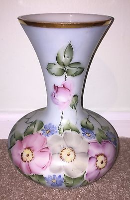 Gorgeous Vintage Consolidated Charleton Hand Painted Milk Glass Vase w/ Label