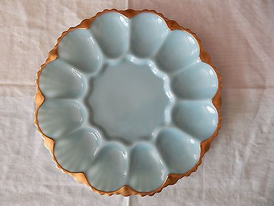 ANCHOR HOCKING DELPHITE BLUE MILK GLASS DEVILED EGG PLATE EASTER DISPLAY