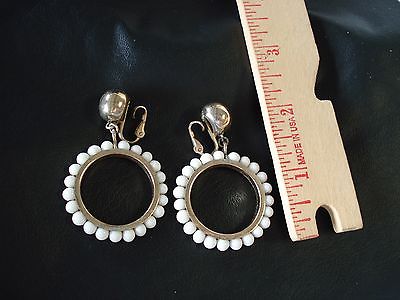 Lotp Vintage NAPIER Large hoop clip on earrings white milk glass beads STATEMENT