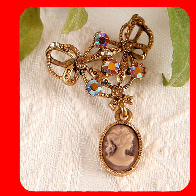 Antique Style CAMEO Pin Brooch Swarovski Crystal Brown