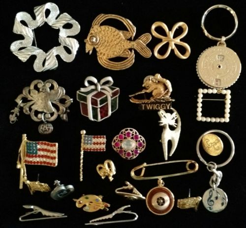 Title (ebay affiliate link): Vintage To Modern LOT Brooch Pin Keychain Rhinestone USA Flag Figural WOW LR120